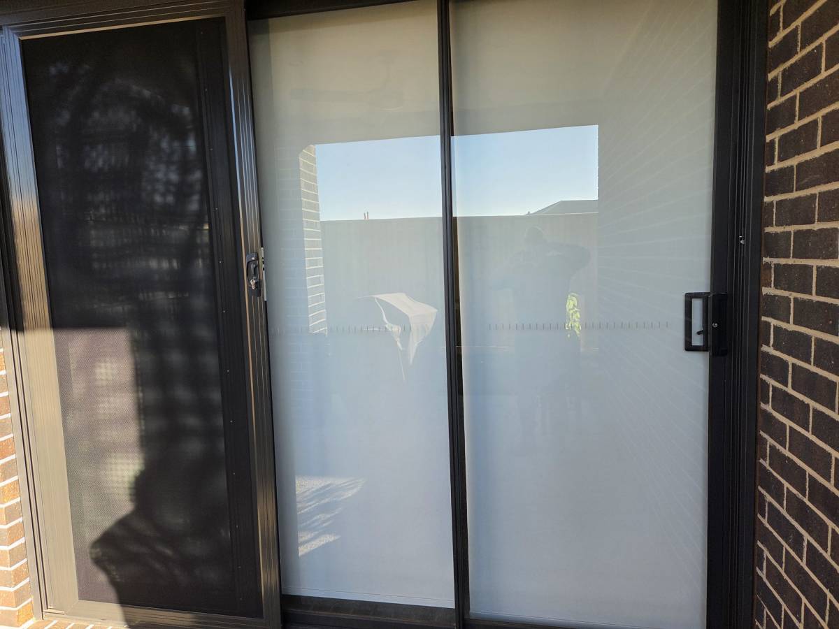 CB: 82 Stacker Sliding Security Doors Fitted With Stainless Steel Mesh. Displaying The Two Security Doors In A Open Position.